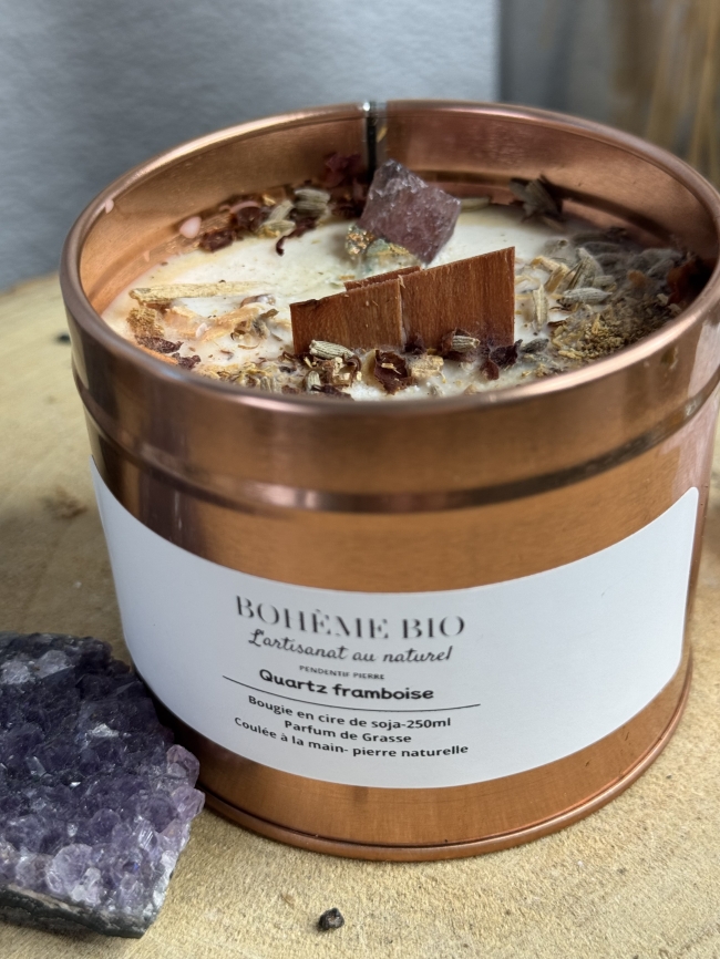Bougie artisanale Quartz Framboise – Bohème Bio